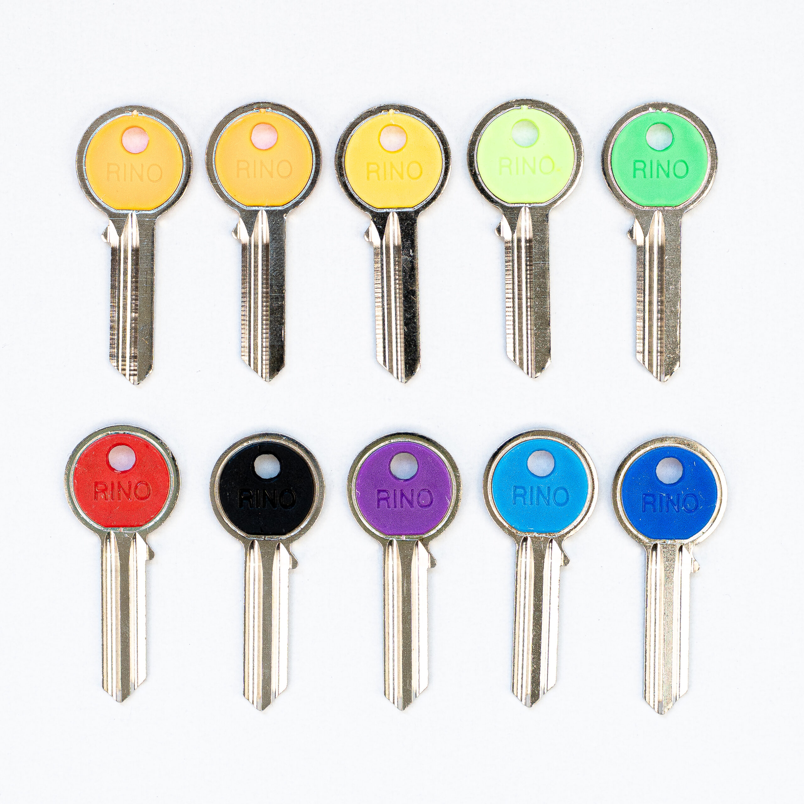 BLANCO DE LLAVE RESIDENCIAL MARCA RINO PERFIL 1000 DERECHO 5 PINES, CABEZA REDONDA CON CENTRO EN PASTA DE LARGA DURACIÓN, CON 10 DIFERENTES COLORES LLAMATIVOS, IDEALES PARA DIFERENCIAR EL USO DE LAS LAVES POR COLORES. MATERIAL LATÓN, ACABADO NIQUELADO.