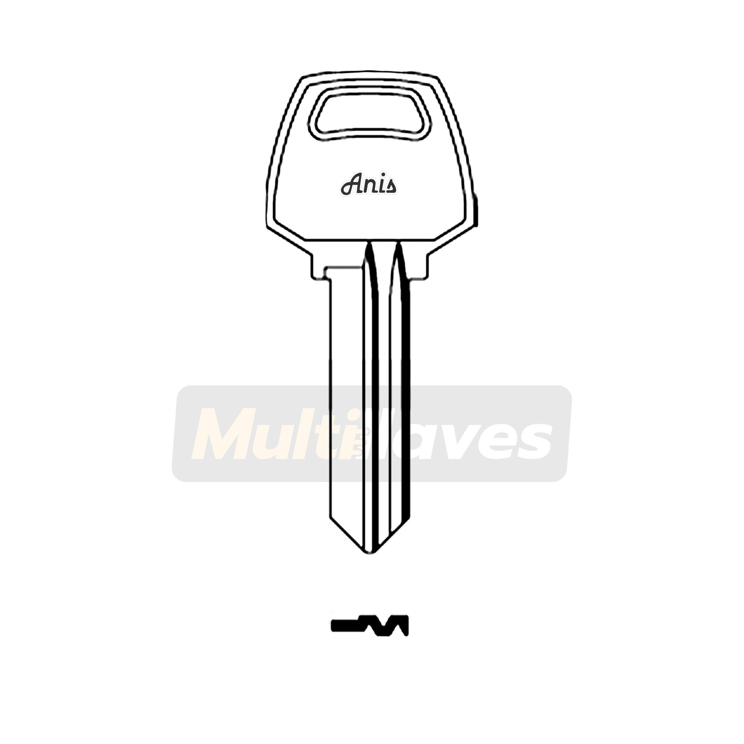 BLANCO DE LLAVE RESIDENCIAL MARCA ANIS-RINO. PERFIL 1076 DE 6 PINES PARA CERRADURAS SAFE, CORBIN. MATERIAL LATÓN, ACABADO NIQUELADO.