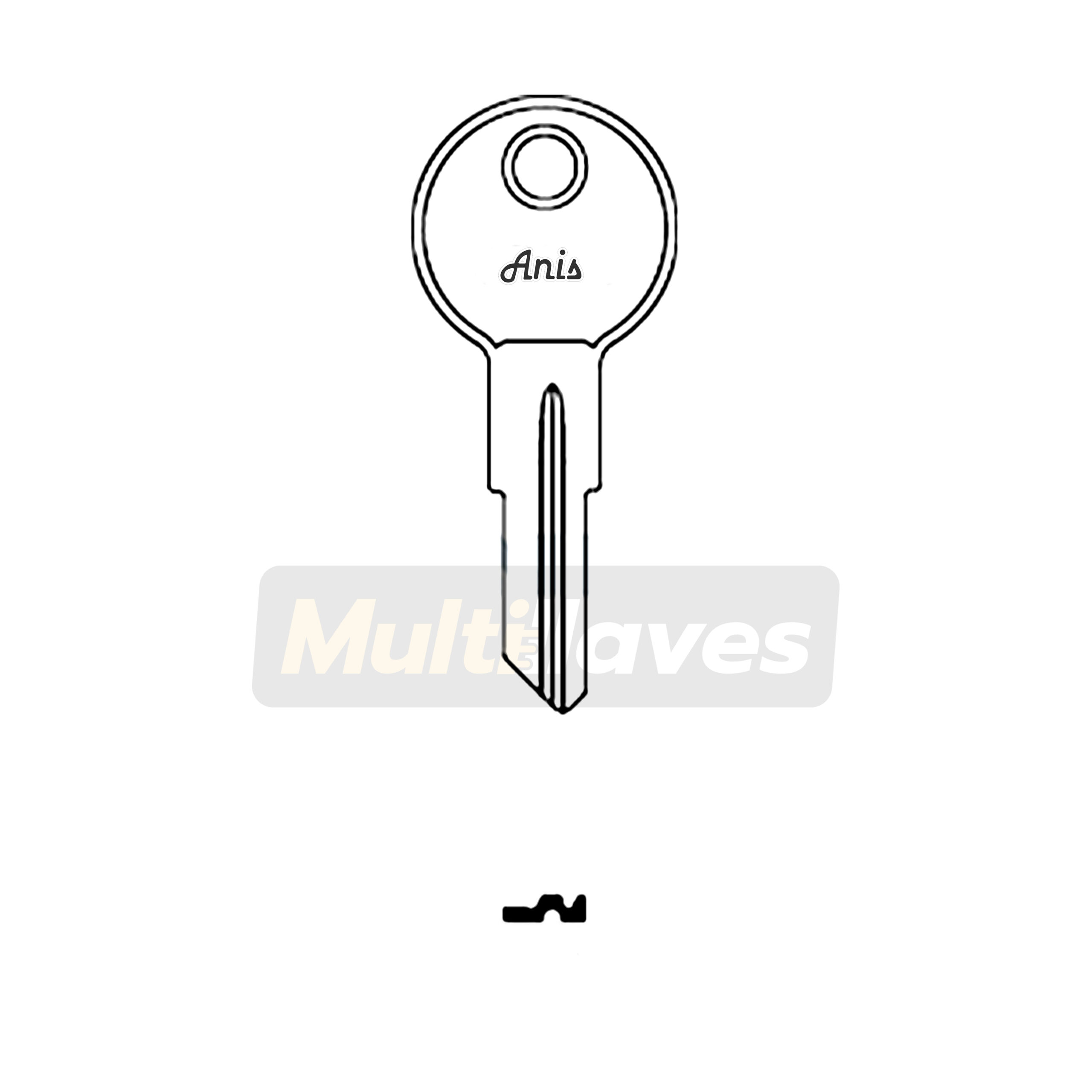 BLANCO DE LLAVE RESIDENCIAL MARCA ANIS-RINO. PERFIL 2540 PARA CERRADURAS TIPO GUANTERA DE 5 PINES. MATERIAL LATÓN, ACABADO NIQUELADO.