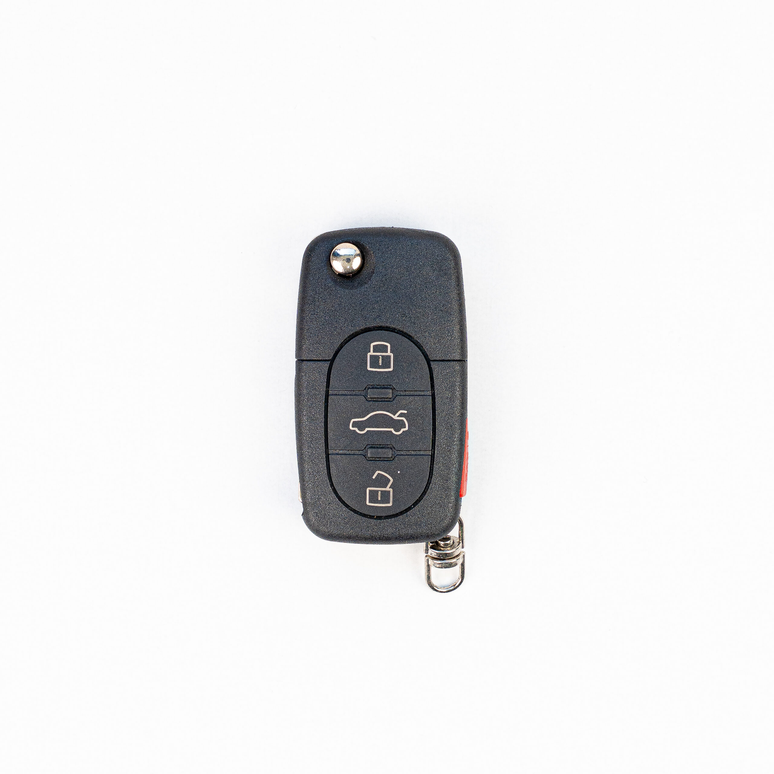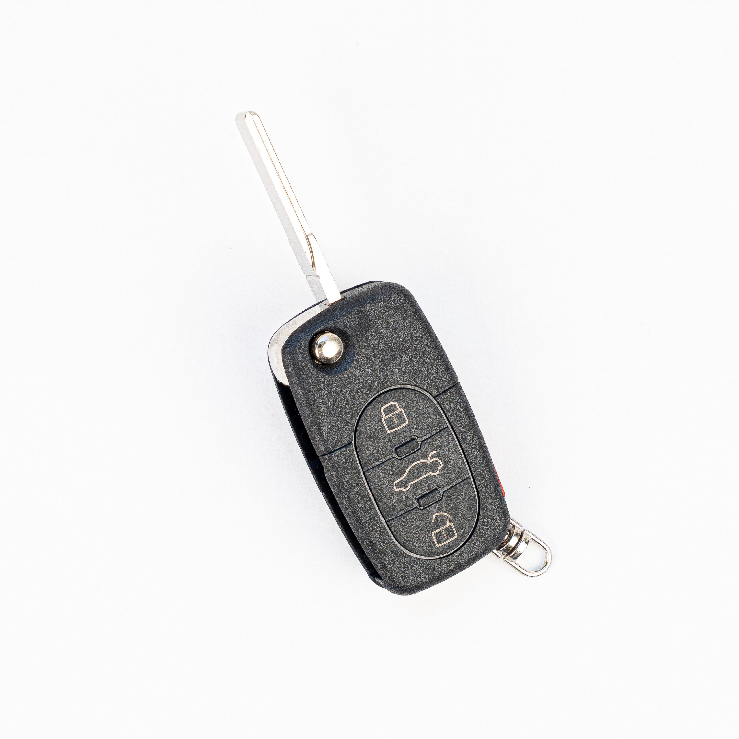 CARCASA DE REEMPLAZO PARA LLAVES DE VEHÍCULOS MARCA AUDI A3, A2 AÑOS 2003 A 2006 CON CONTROL REMOTO DE 4 BOTONES, APERTURA, CIERRE, MALETERO Y PÁNICO CON LLAVE TIPO NAVAJA. MATERIAL DE LA ESPADA LATÓN, PERFIL HU66, CUERPO DE LA CARCASA EN PASTA DE ALTA CALIDAD.