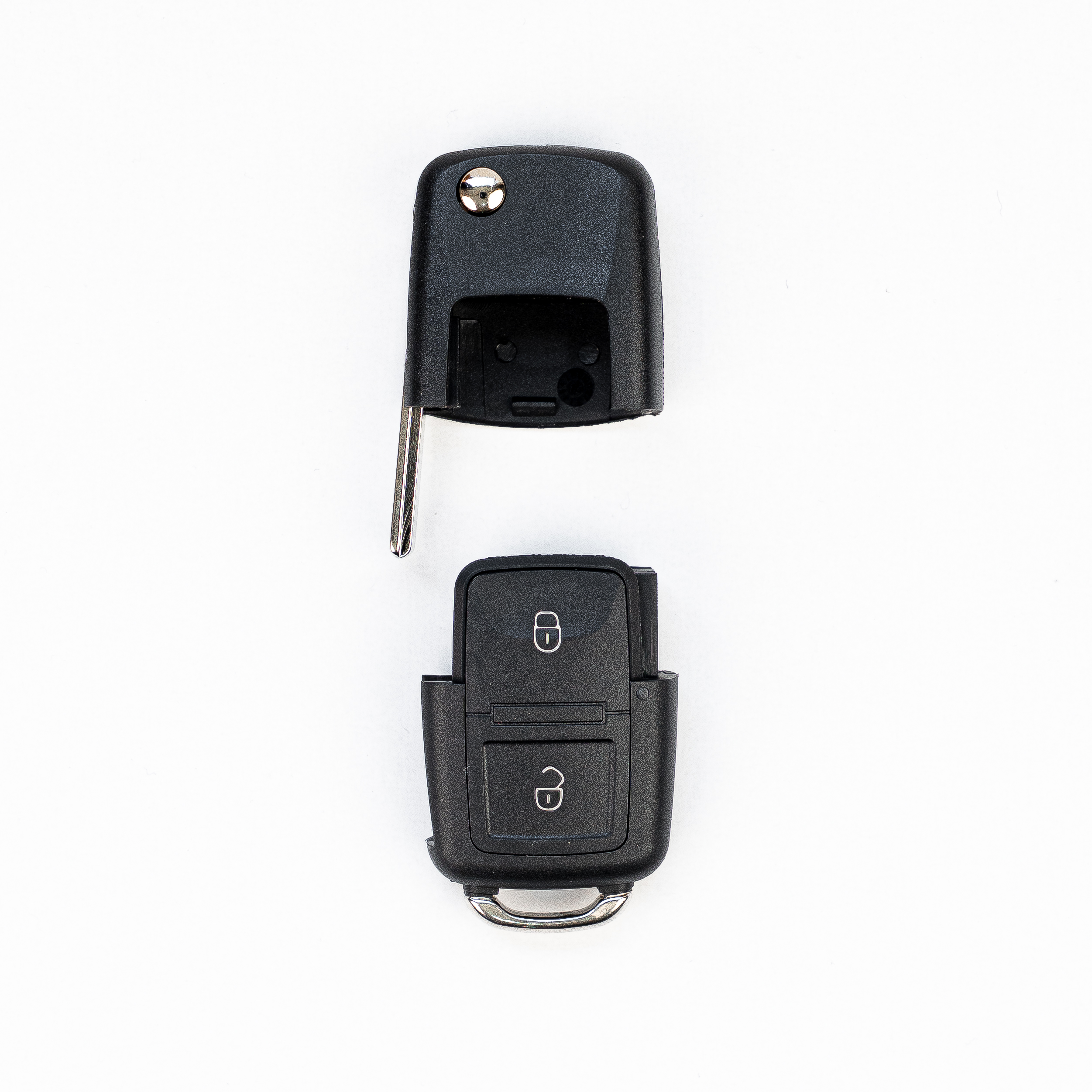 CARCASA DE REEMPLAZO PARA LLAVES DE VEHÍCULOS MARCA VOLKSWAGEN, FOX, GOL AÑOS 2003 A 2006 CON CONTROL REMOTO DE 2 BOTONES, APERTURA Y CIERRE CON LLAVE TIPO NAVAJA. MATERIAL DE LA ESPADA LATÓN, ACABADO NIQUELADO, PERFIL DE LA ESPADA HU-66, CUERPO DE LA CARCASA PASTA DE ALTA CALIDAD. INCLUYE CARCASA DEL CONTROL Y CUNA DE LA LLAVE.