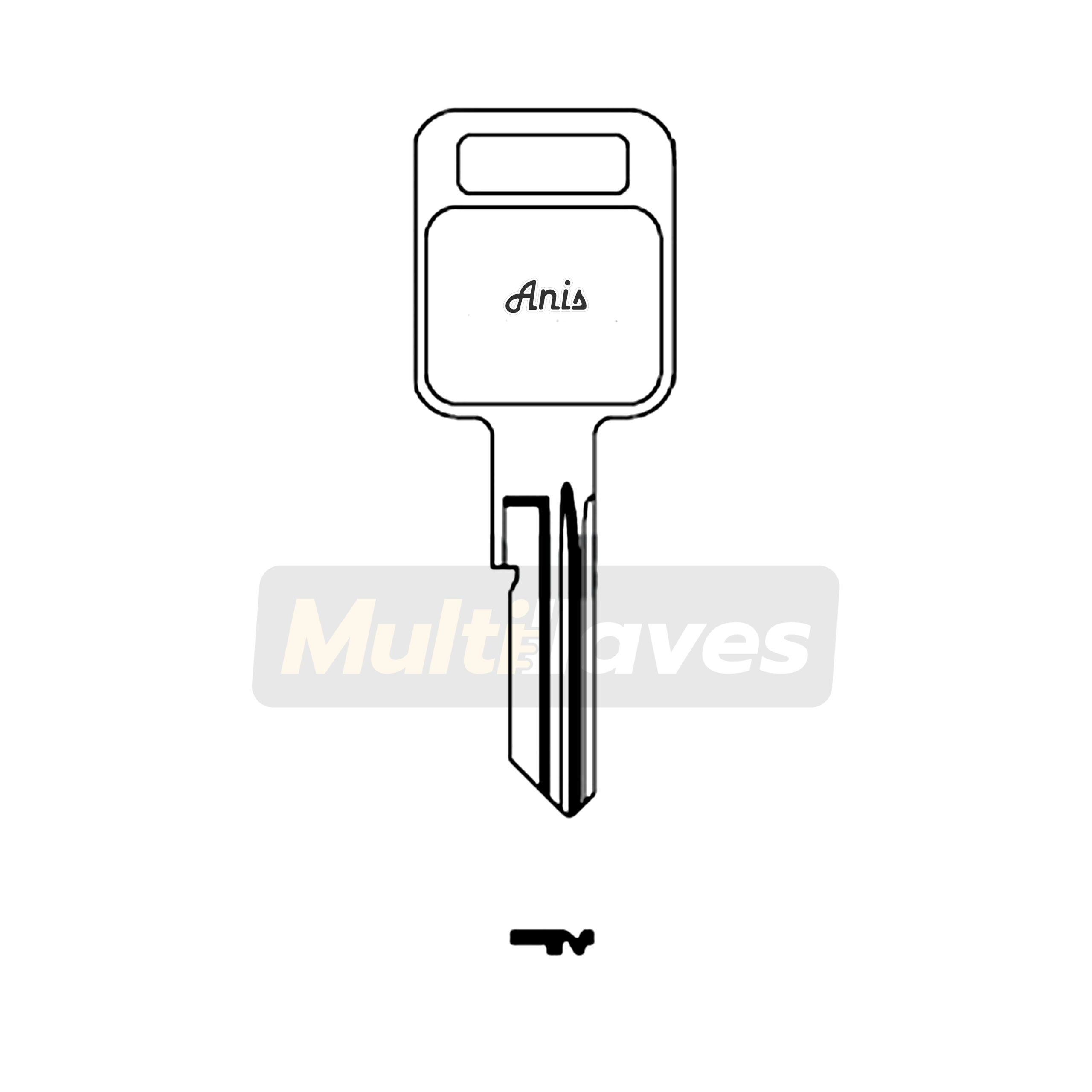 BLANCO DE LLAVE AUTOMOTRIZ MARCA ANIS-RINO. APLICA PARA VEHÍCULOS MARCA CHEVROLET BLAZER, MINI-BLAZER, GRAND BLAZER Y PESADOS GMC. ESPADA PERFIL LETRA J, MATERIAL LATÓN, ACABADO NIQUELADO.