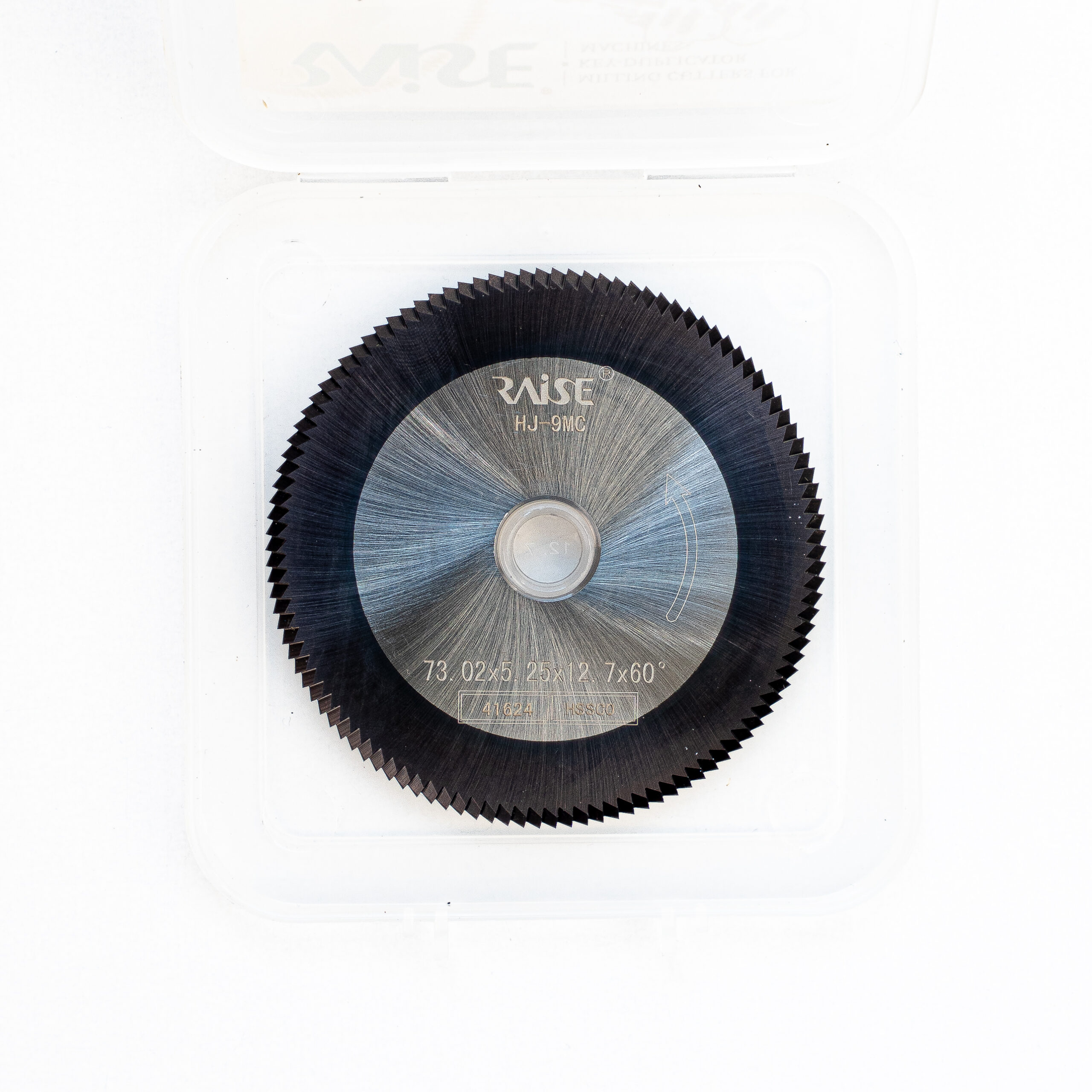 REPUESTO FRESA MARCA RAISE. SE UTILIZA EN MAQUINAS ILCO REF 017 AUTOMÁTICA. BUJE INTERNO 12,7mm, DIÁMETRO EXTERIOR 73mm, ESPESOR 5,25mm, ANGULO DE CORTE 60 GRADOS. DOBLE ANGULO DE CORTE, 100 DIENTES, MATERIAL HSSCO “ACERO SUPER RÁPIDO” CON REVESTIMIENTO EN COBALTO QUE OFRECE ALTA RESISTENCIA AL CALOR Y DURABILIDAD AL CORTE.