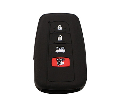 PROTECTOR EN SILICONA PARA LLAVES DE VEHÍCULOS MARCA TOYOTA CON CONTROL DE PROXIMIDAD DE 4 BOTONES. COLOR NEGRO.