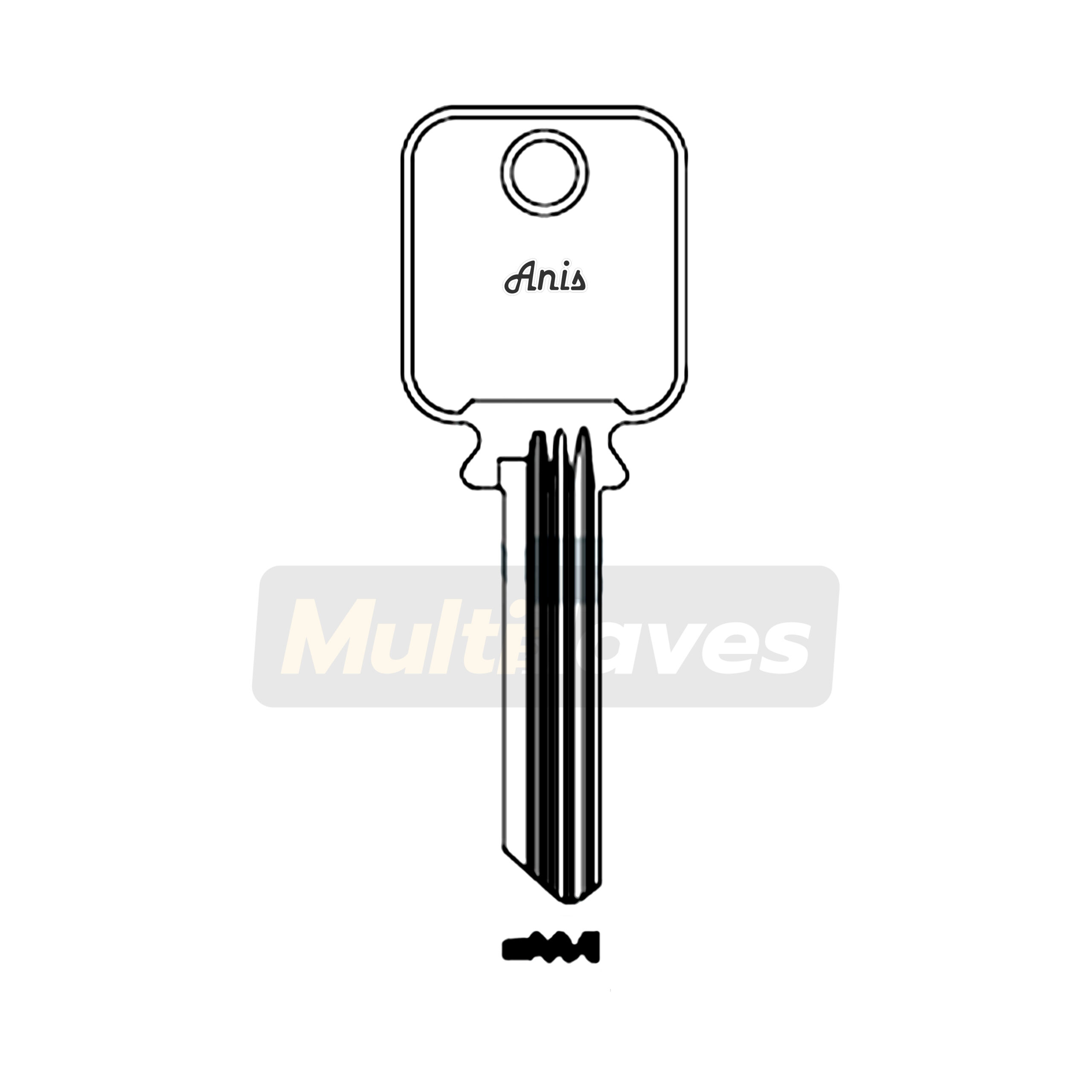 BLANCO DE LLAVE SEGURIDAD MARCA ANIS-RINO, PARA CERRADURAS MEDECO, ESPADA PERFIL LL. MATERIAL LATÓN, ACABADO NIQUELADO.