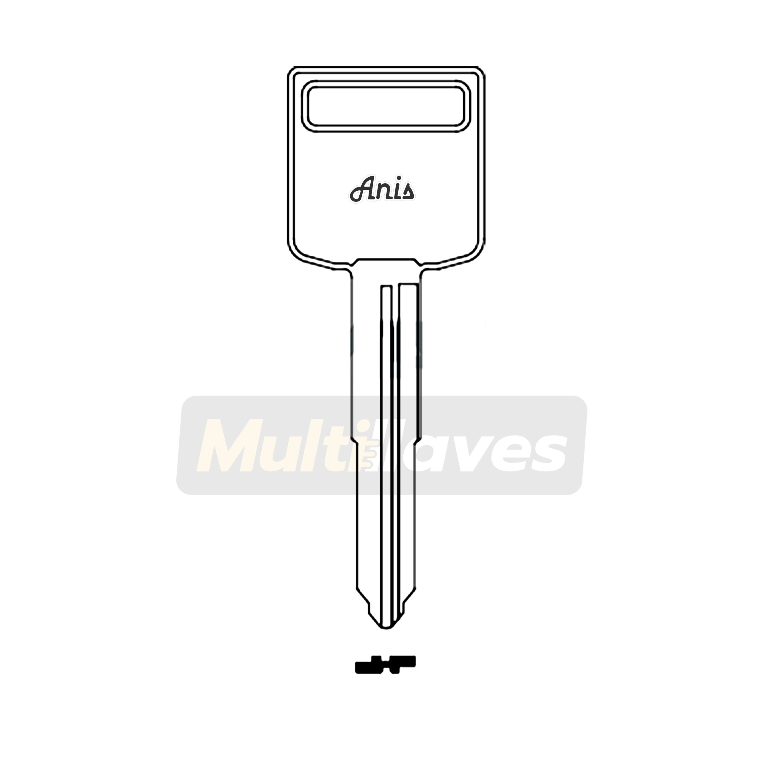 BLANCO DE LLAVE AUTOMOTRIZ MARCA ANIS-RINO PARA MOTOCICLETAS SUZUKI BEST PERFIL SZ16. MATERIAL DE LA ESPADA LATÓN, ACABADO NIQUELADO.